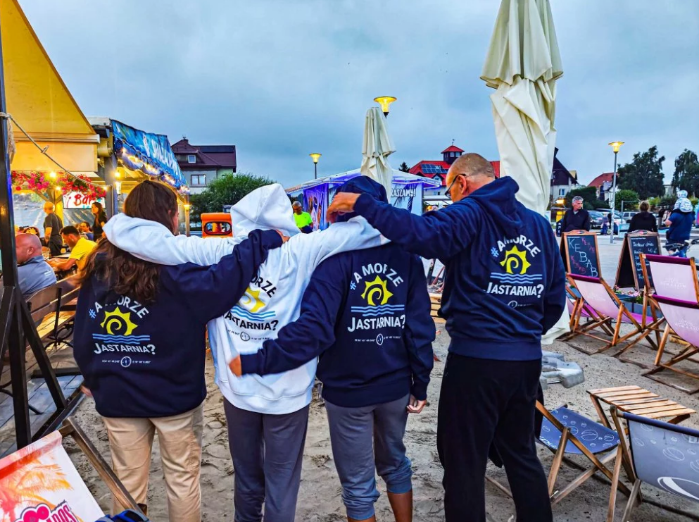 Hitem naszej kolekcji jest bluza "A morze Jastarnia?". To nie jest zwykła odzież reklamowa. To mięsista, świetnej jakości bawełna, uszyta w Polsce. Sprawdzi się idealnie, gdy wracacie z deski albo robicie wieczorny rundkę po porcie.
